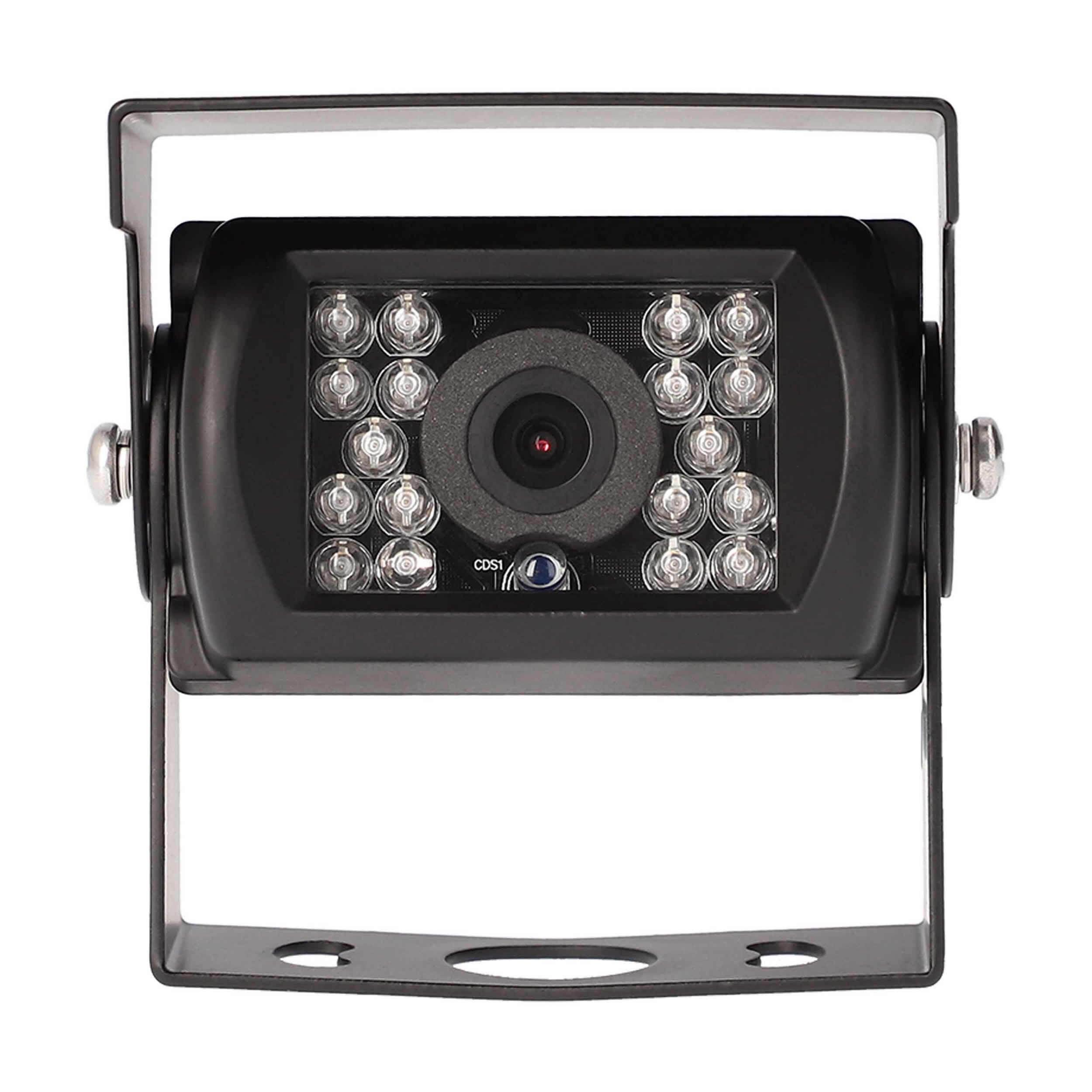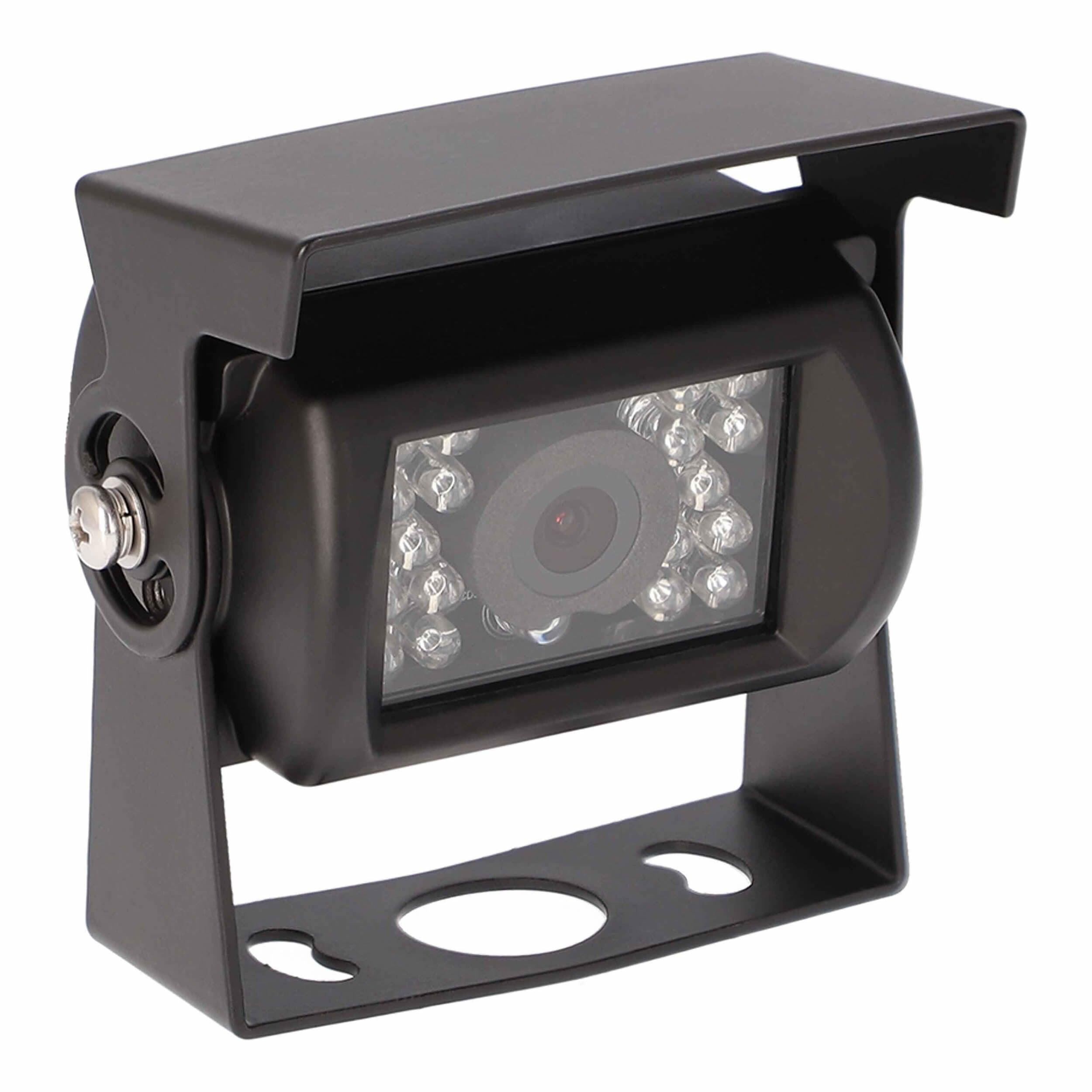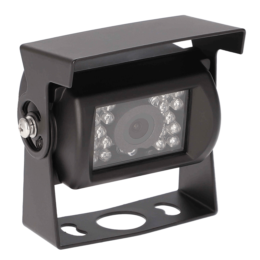 Protect the area around your commercial vehicle with this heavy-duty high-resolution camera. iBeam’s Heavy Duty Universal Commercial Camera with Hood provides commercial drivers with a 120° image of surroundings to increase safety for large fleet vehicles. The camera hood reduces glare from sunlight or other nearby light sources so that images are captured more clearly. Drivers will have visibility at night, thanks to 18 IR LEDs. This sturdy camera is made for rugged commercial use, with high-quality metal housing and an IP68 rating. It also features selectable parking lines and is PAL and NTSC switchable. Stainless steel mounting hardware and a 4-pin DIN to RCA adapter are included for easy installation.