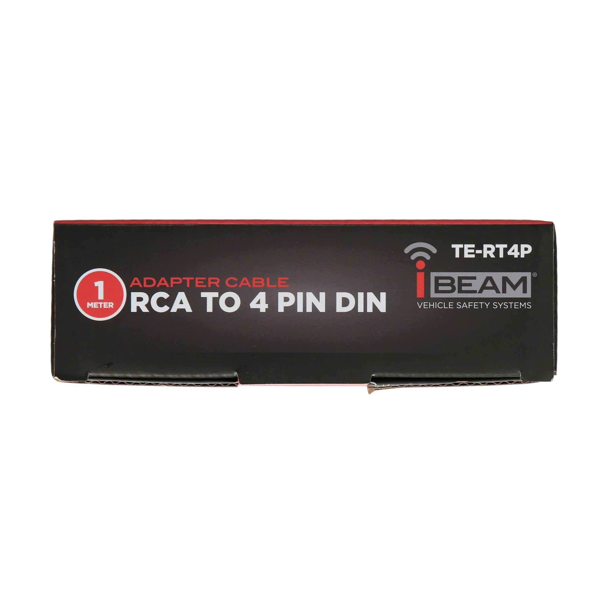 Commercial RCA to 4-Pin Din Adapter Cable by iBeam®. Connect up to 4-Pin Din cameras to a monitor display for easy installation with iBeams Commercial RCA to 4-Pin Din Adapter Cable. This adapter cable features a female 4-Pin Din connector on one end and a standard male RCA plug-in on the opposite end allowing RCA cameras to be used with a commercial monitor. Connects audio video and power for RCA cameras to your display. Generous 3.28 feet (1 meter) of cable length to accommodate larger vehicle applications.