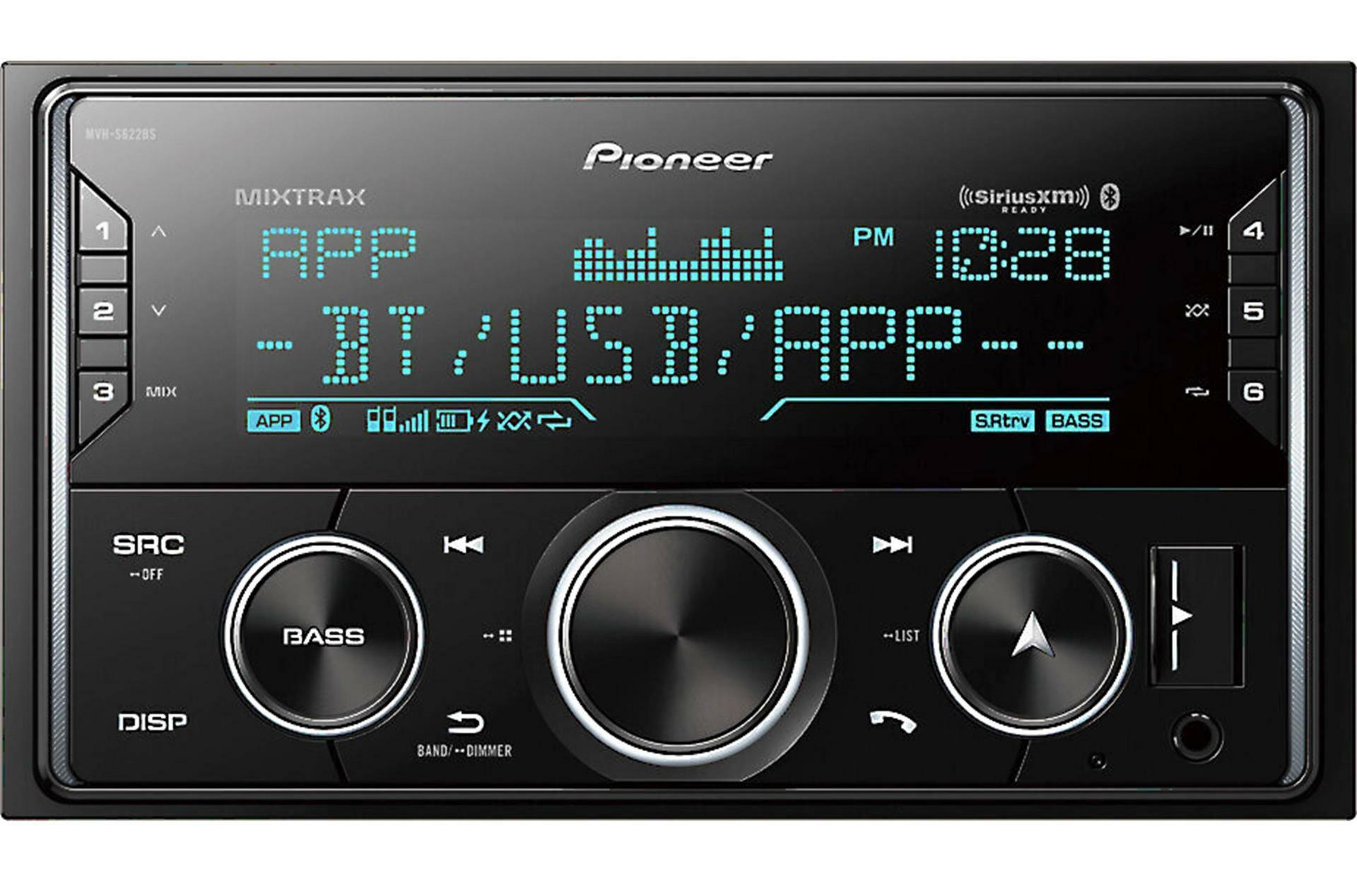 Pioneer MVH-S622BS Double DIN Digital Media Receiver with Enhanced Audio Functions, Pioneer Smart Sync App Compatibility, MIXTRAX, Built-in Bluetooth, and SiriusXM-Ready