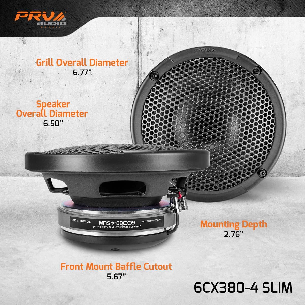 The best of the pro audio and car audio worlds are combined in this compact 6.5? speaker! The 6CX380-4 SLIMs coaxial speaker has a built-in tweeter driver, an innovative design that delivers amazing sound clarity.