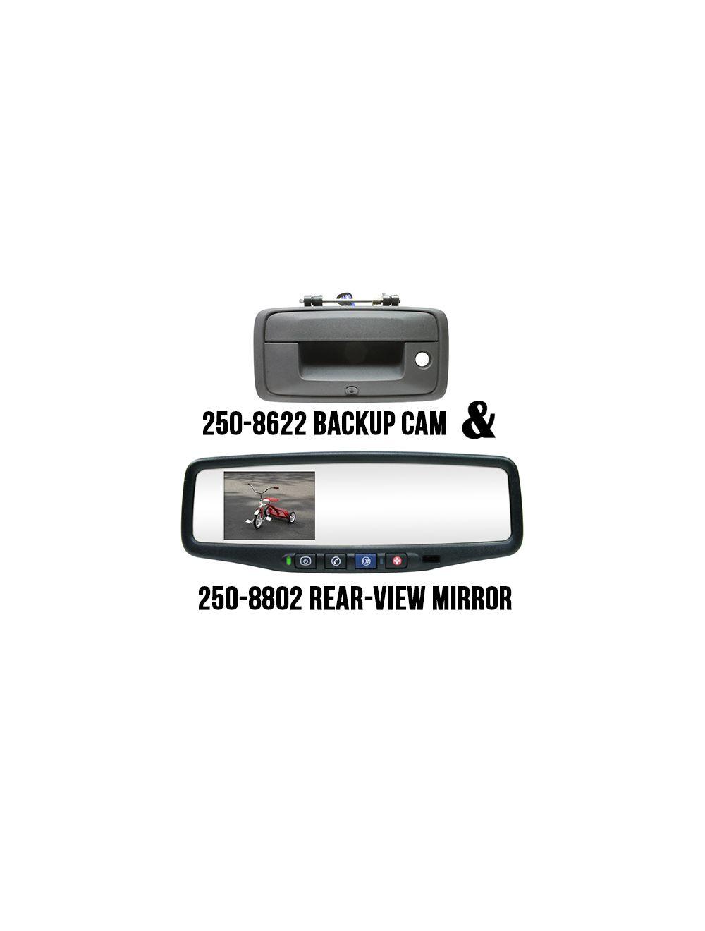 Rostra 250-8802-GM14LC (250-8802-GM14LC) RearSight Rear-View Mirror /w 3.5 TFT LCD Monitor feat. OnStar Controls for 2014 Chevy Silverado & GMC Sierra (250-8802-GM14) & 2014+ Chevy & GMC Tailgate Handle /w Backup CMOS Camera (250-8622)