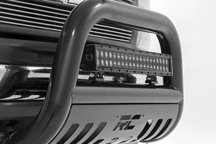 It's the ultimate combination of form and function with Rough Country's durable, new Bull Bars. Protect the front end of your truck with our beefy yet stylish Bull Bar kit. Featuring a 3-inch diameter tube design and corrosion-resistant finish, this Bull Bar package offers superior protection from hazards of the road and trail.