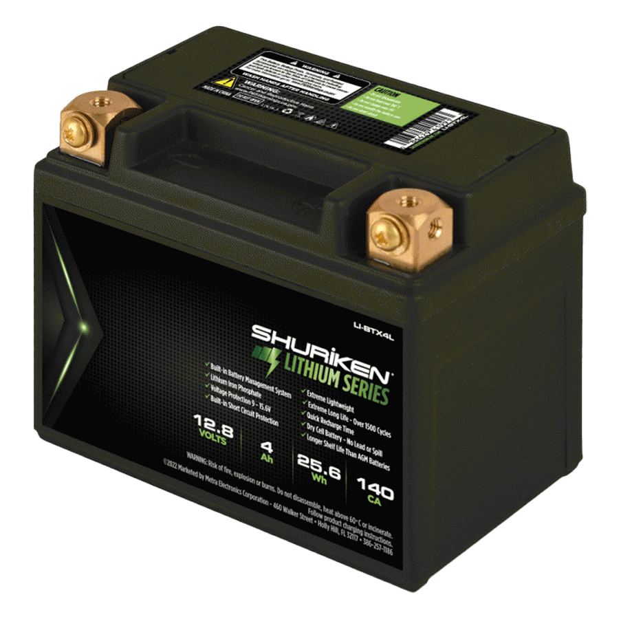 Shuriken lithium-ion (Li-ion) batteries are a great choice for situations where the power source needs to be lightweight and compact, with a quick energy discharge. These batteries are extremely lightweight while remaining long-lasting, reliable, and vibration-resistant. Internal components are sectioned into independent cells that make for a safer battery that is less likely to short out if damaged. This Shuriken lithium-ion battery is perfect for providing reliable power for numerous applications, including stereo systems, RVs, marine, solar energy storage, and more. It is designed to recharge extremely quickly, have a longer shelf life during storage, and operate through many more cycles than conventional batteries.