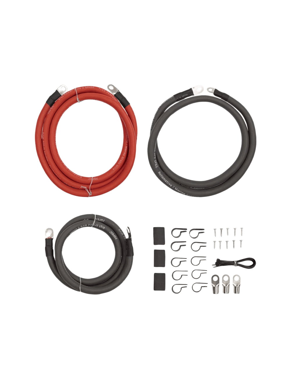 • (2) 4 ft. 1/0ga ground cables with crimped and shrink wrapped ring terminals