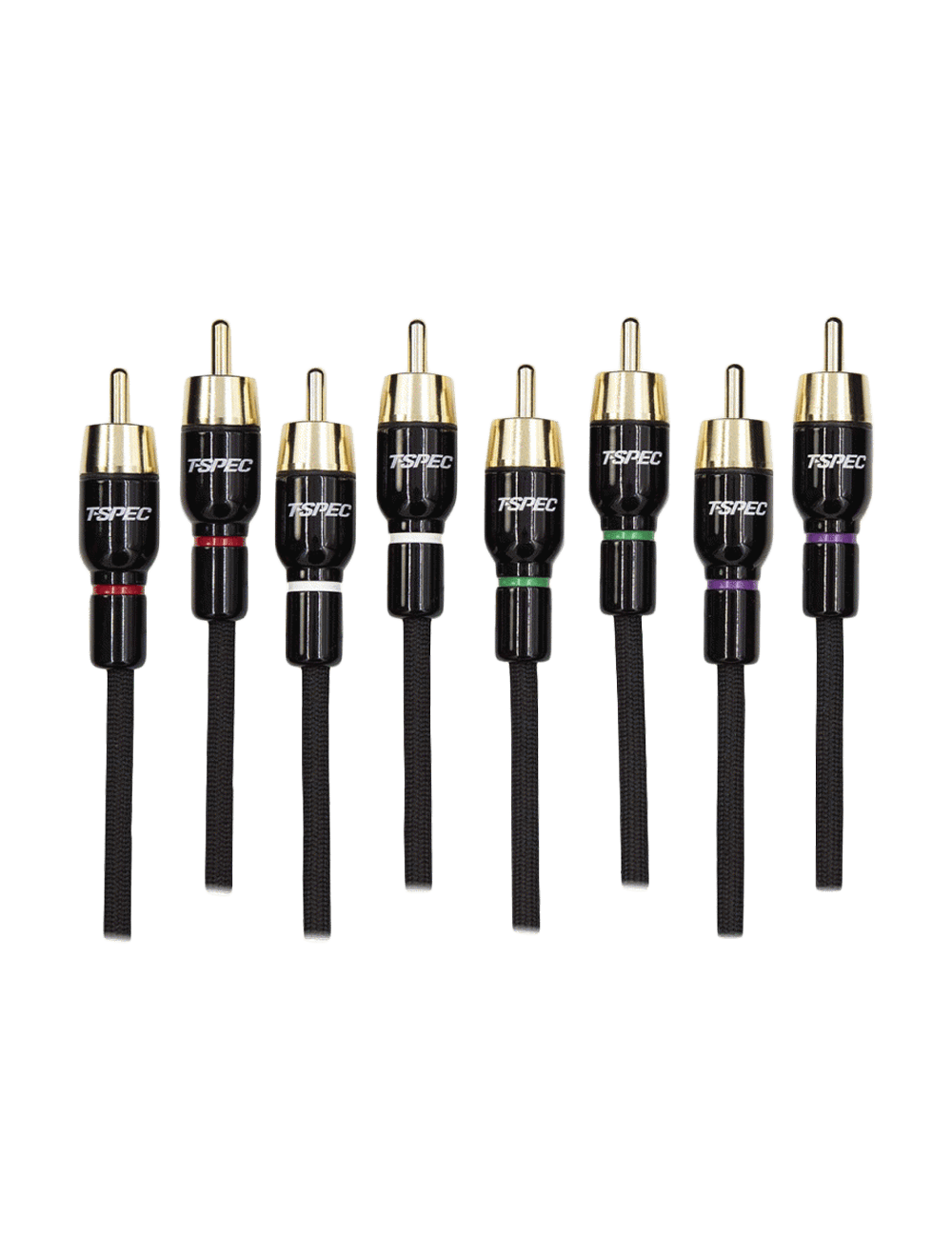 Gold-plated copper RCA tips with continuous locking barrel Enamel painted color bands for durable identification 26AWG oxygen-free...